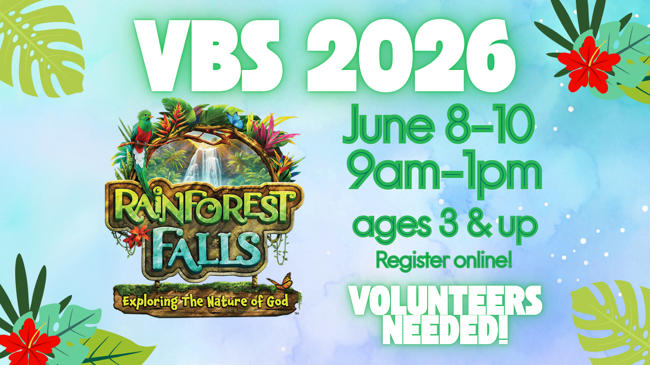 We are so excited about Rainforest Falls VBS this year! VBS is for ages 3-PreK. There are limited spots available, so register here today!